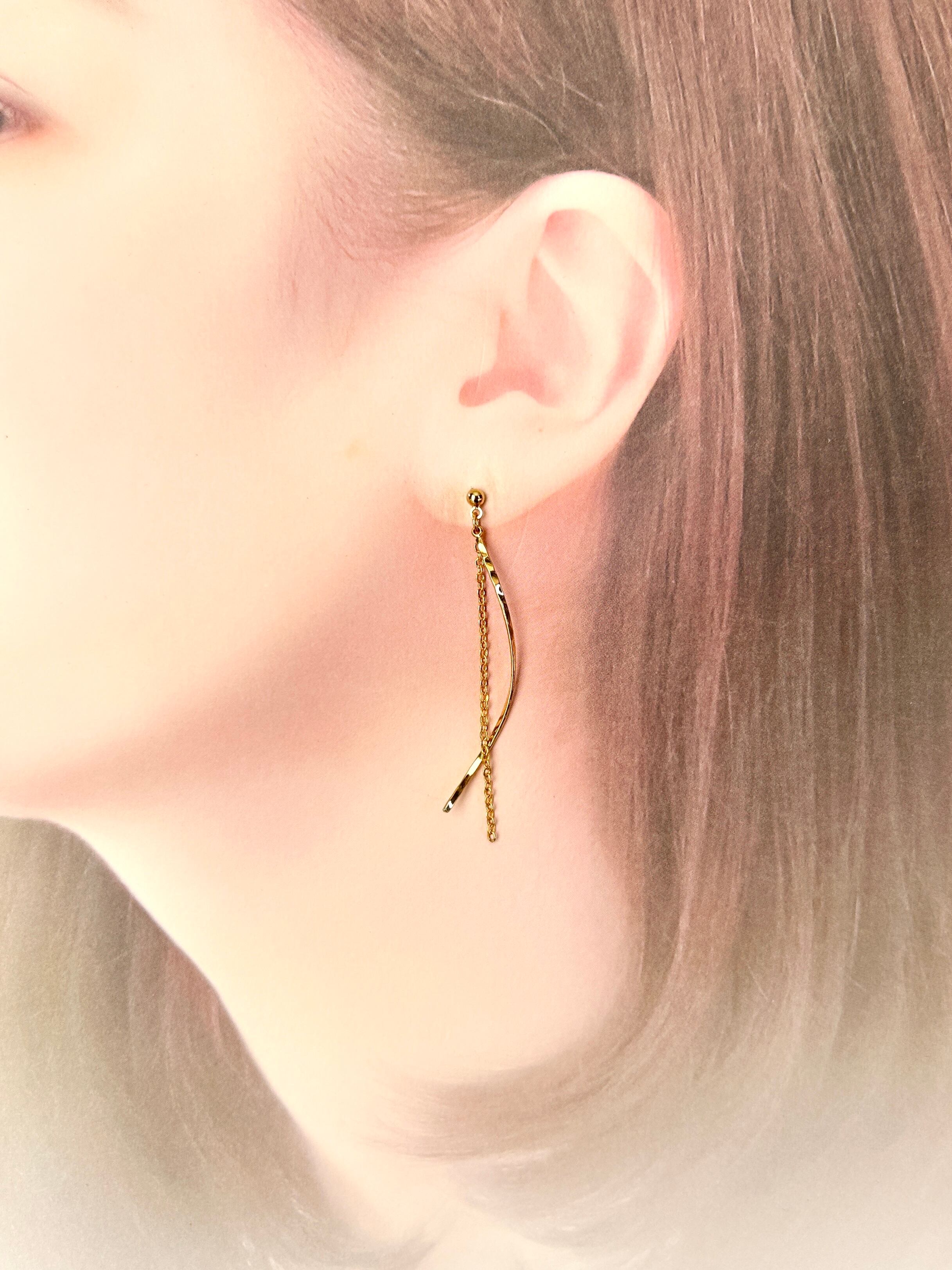 揺れる大人アシンメトリーピアスと、プチ淡水パールピアスの使えるセットです。