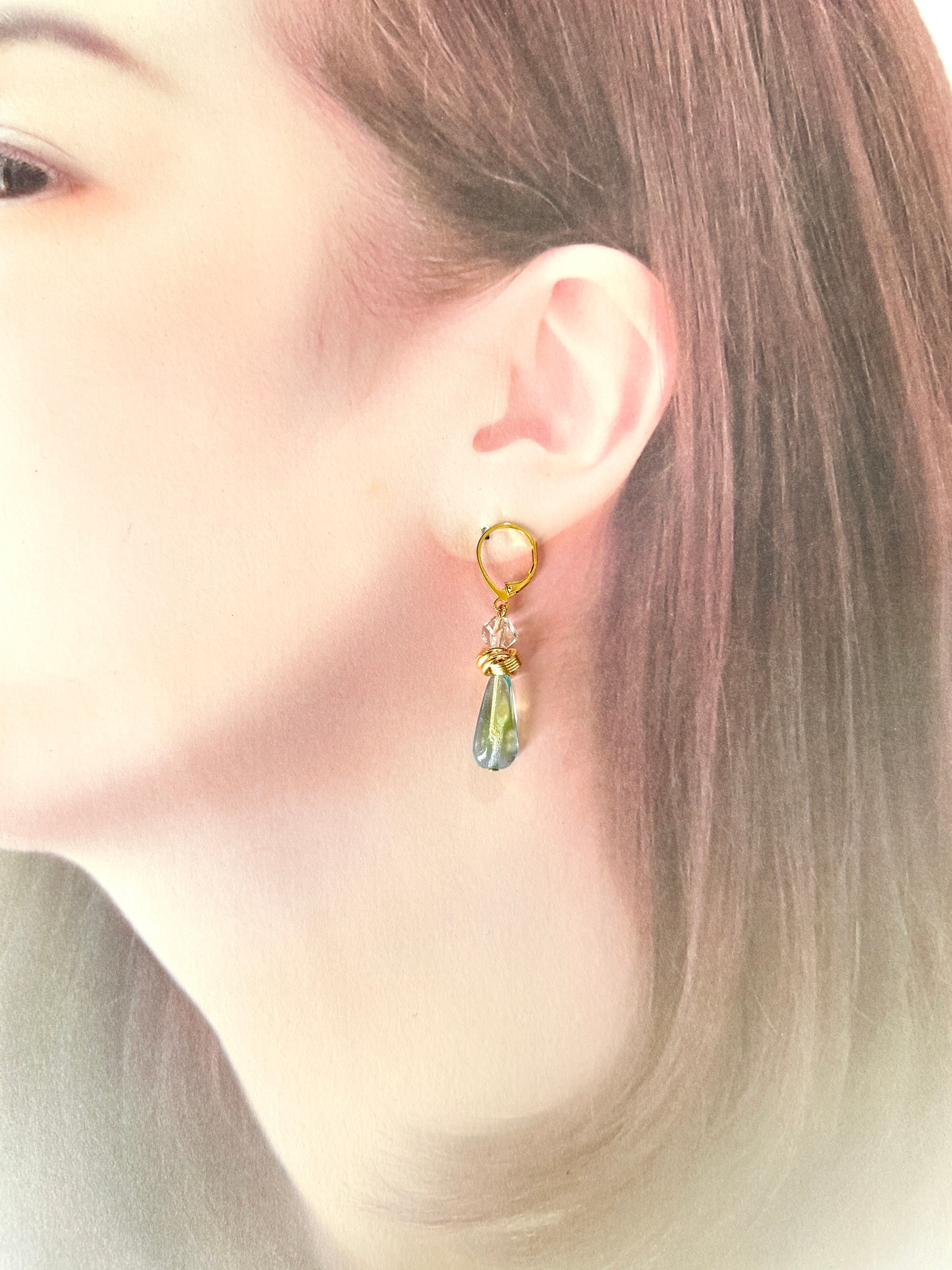 キレイ色チェコビーズ アシンメトリーフレンチフックピアス/イヤリング