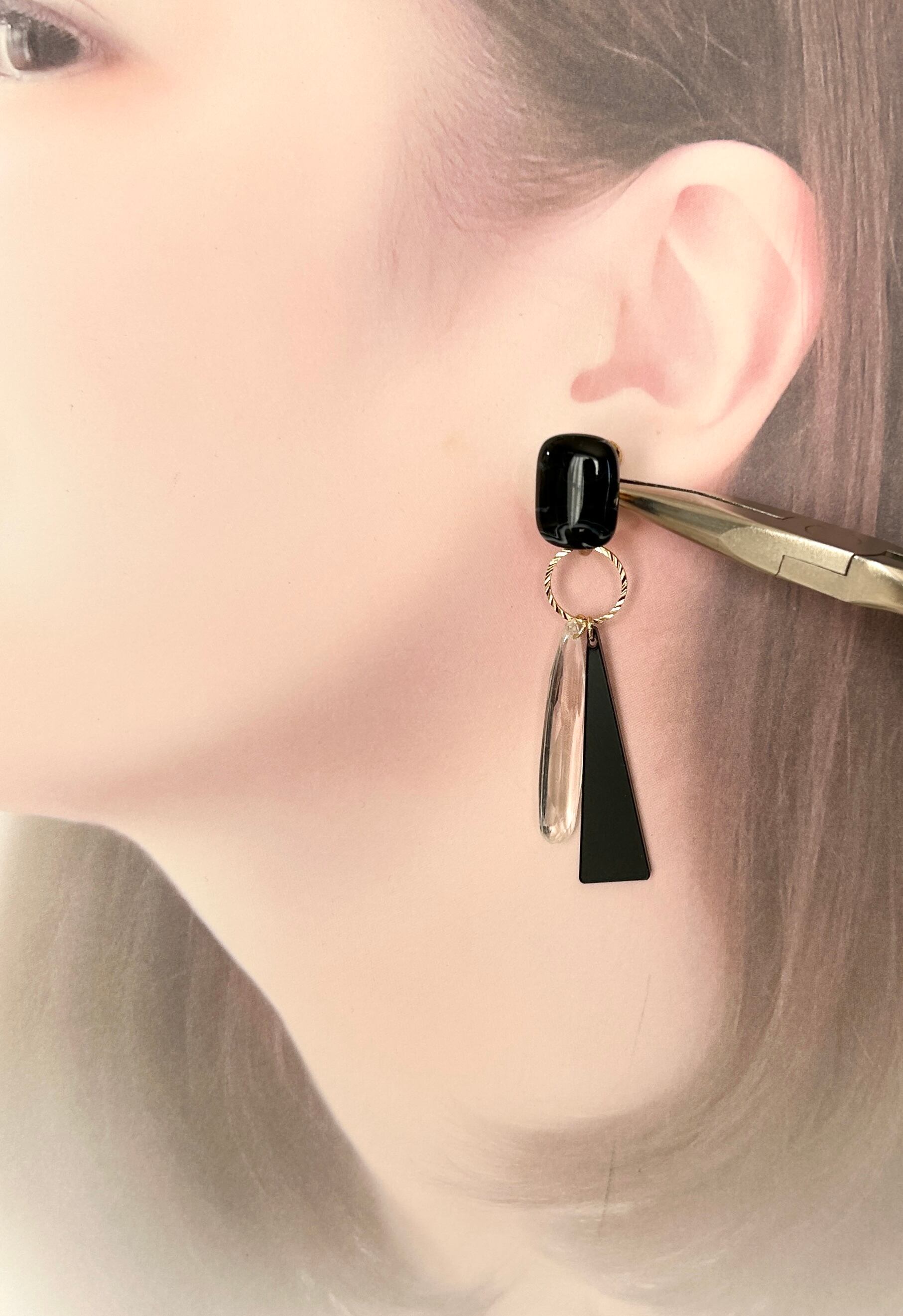 ブラックマーブルスクエアカボション×ブラック・クリア。