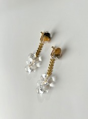 かっこいいガラスカボションに、デザインチェーンとクリアビーズを合わせた、個性派大人イヤリングです。