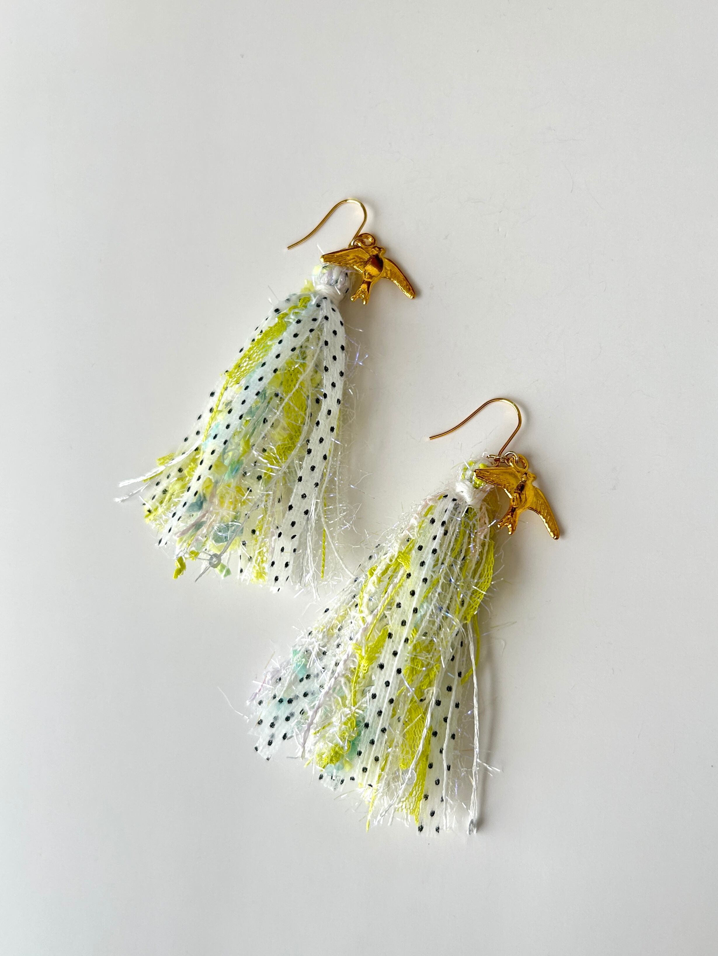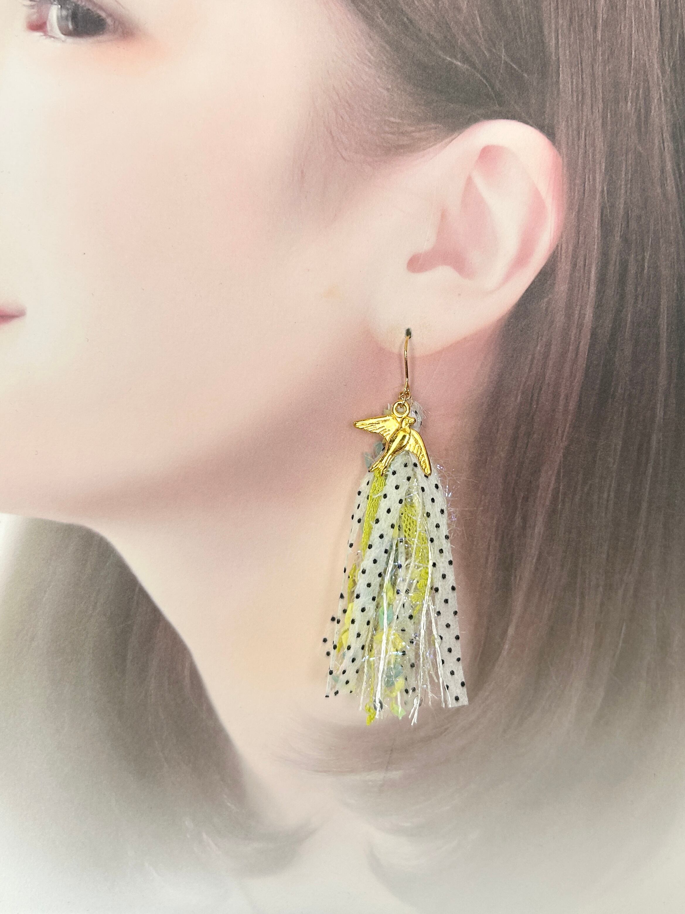 再販✳︎引き揃え糸タッセル×鳩チャーム 304ステンレスフックピアス/ニッケルフリーイヤリング