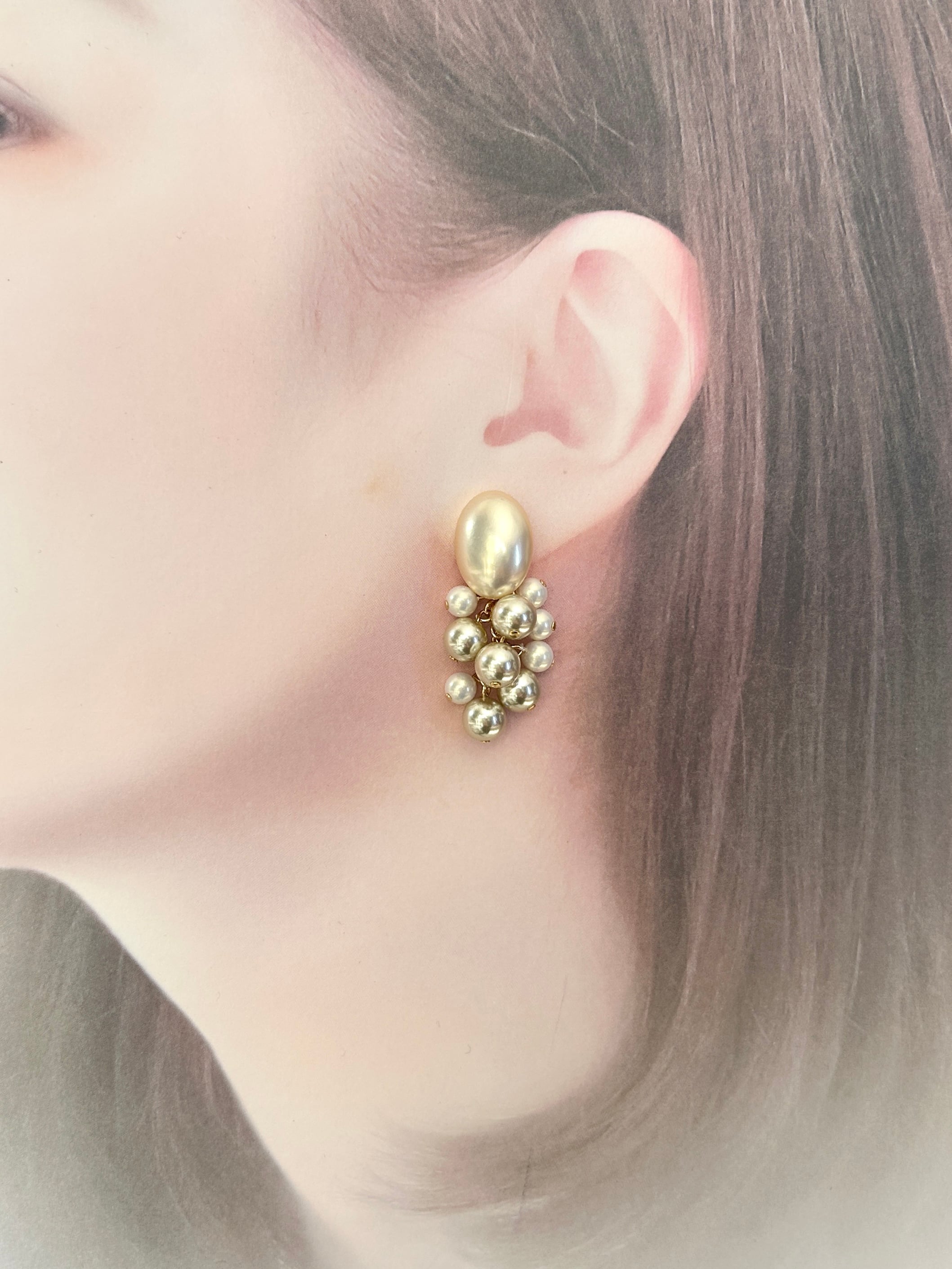 vintageパールカボション2wayピアス(オーバル)