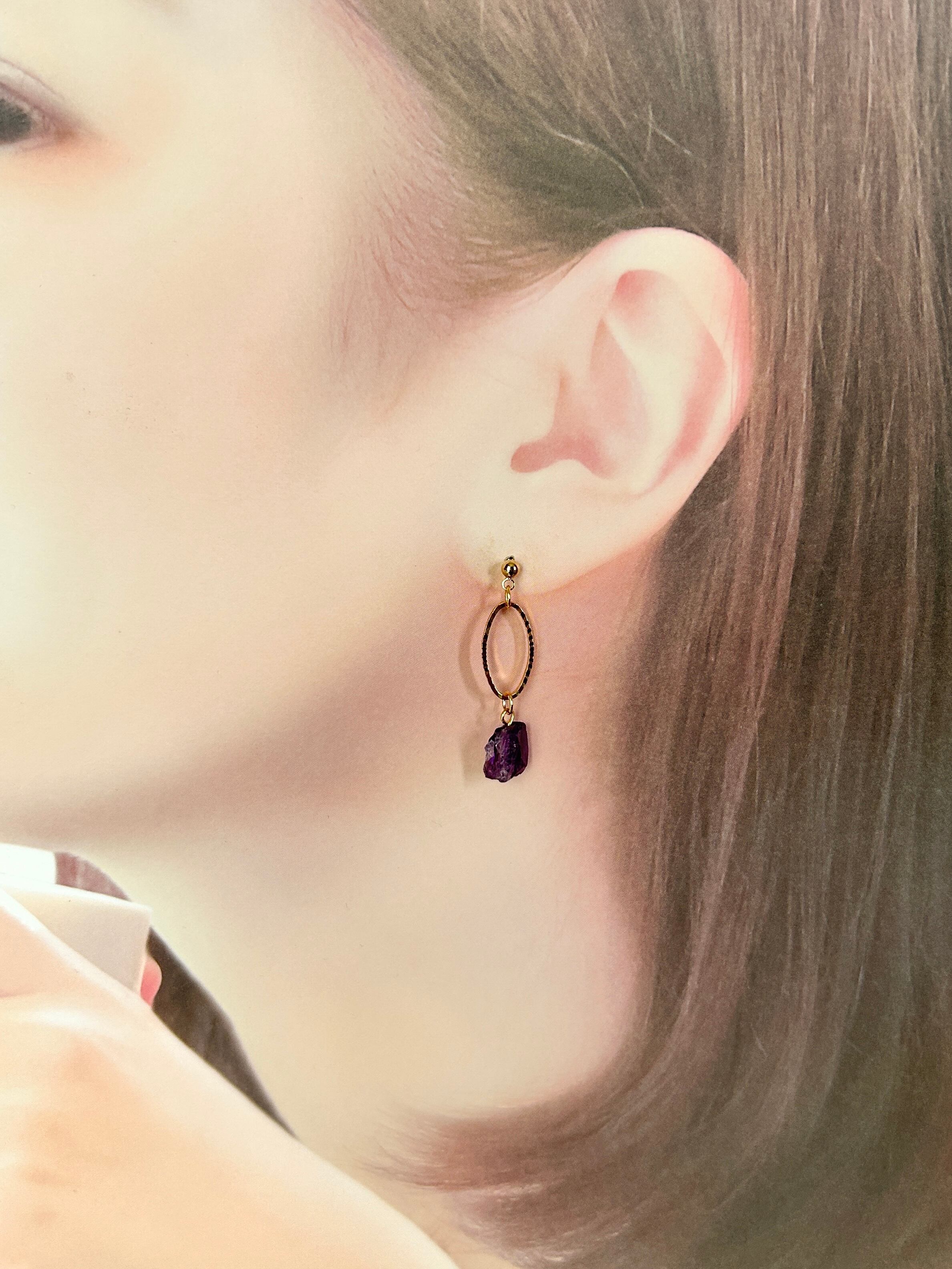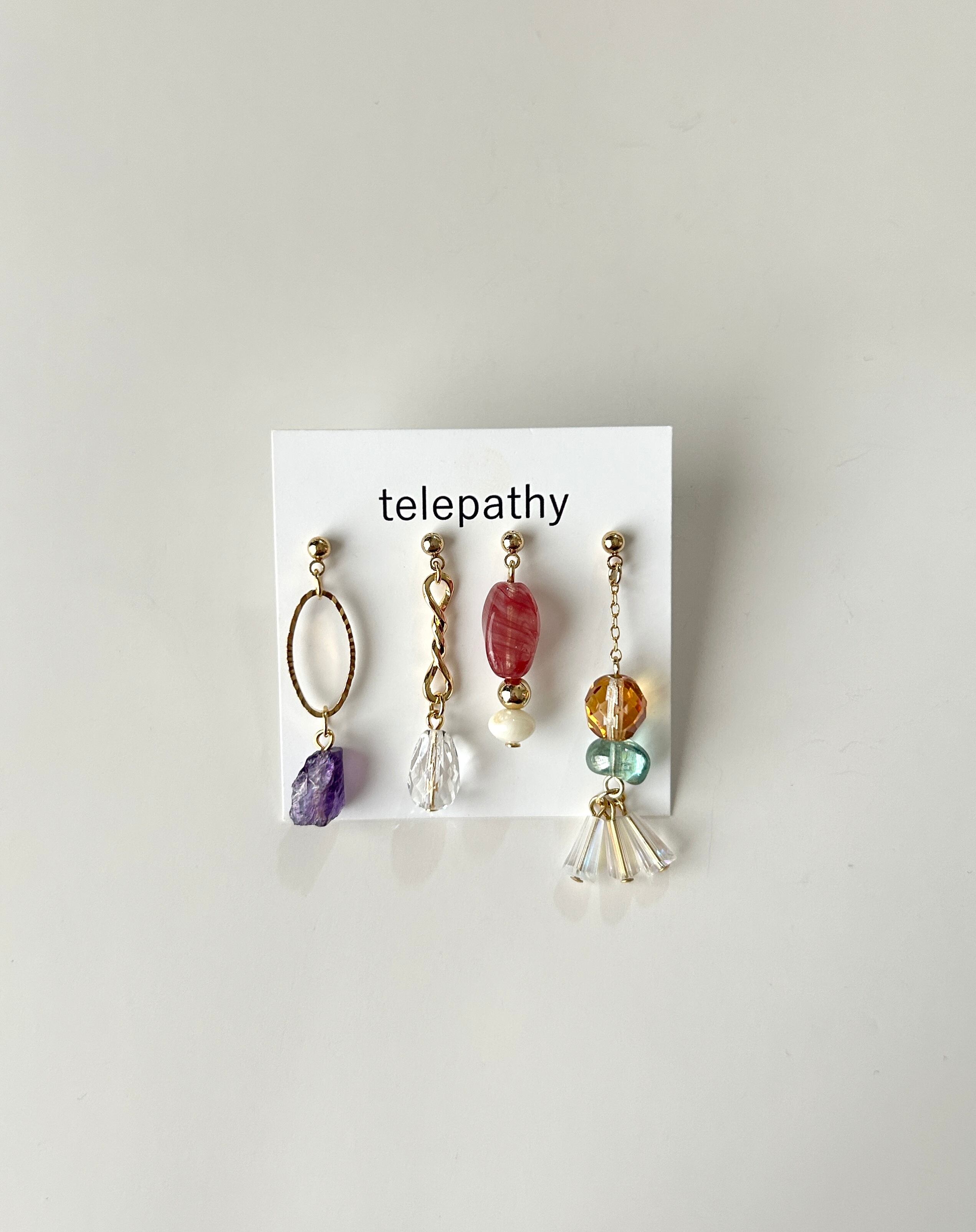 イヤーカフと合わせても可愛い、チェコビーズや天然石等を使用した、アシンメトリーピアスセットです。