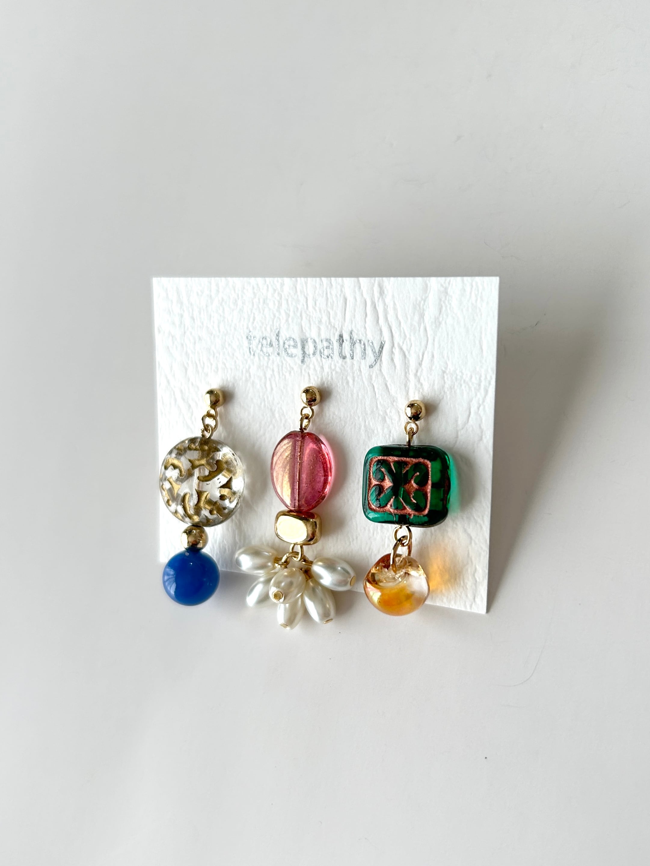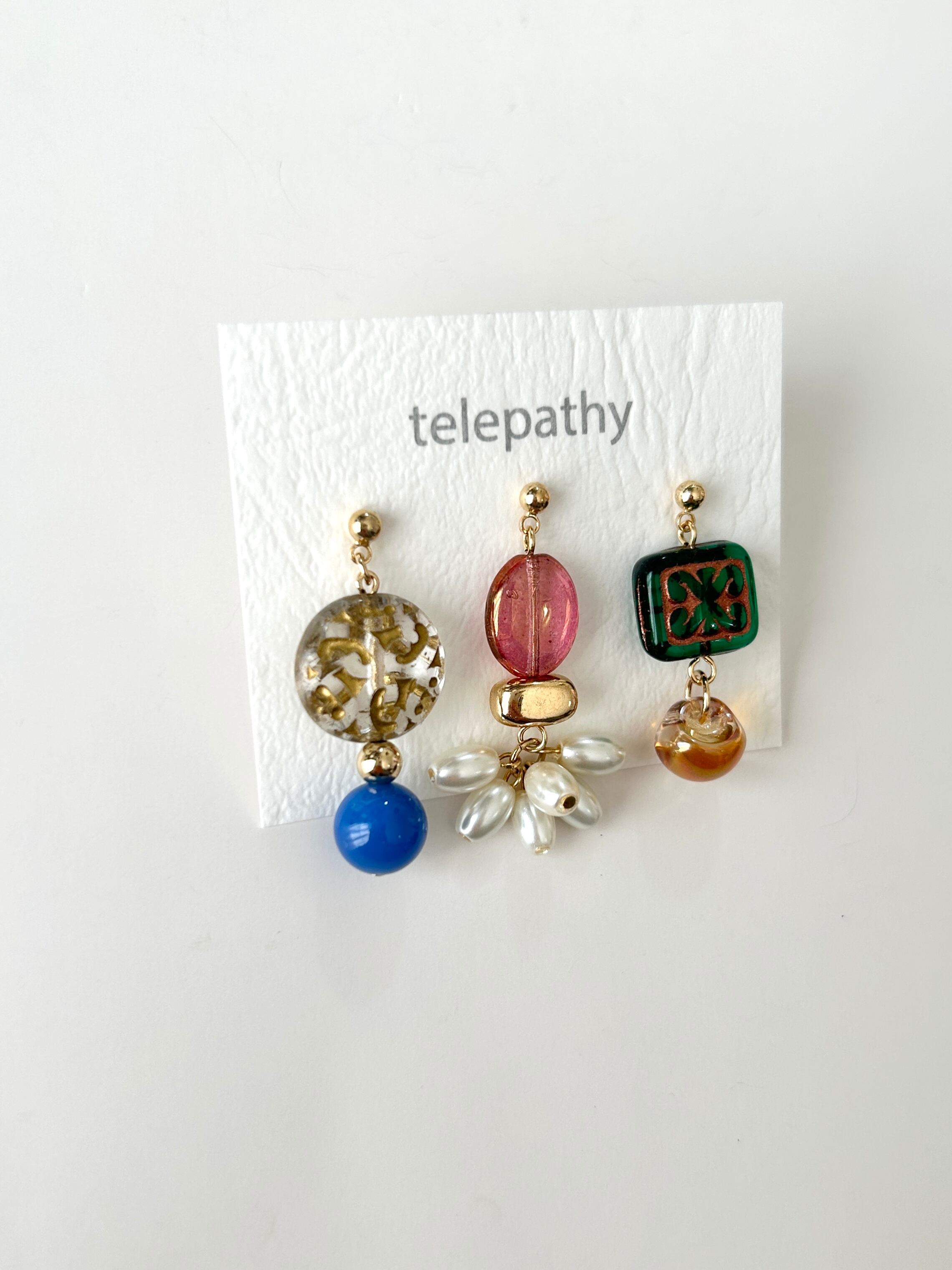 イヤーカフと合わせても可愛い、チェコビーズをメインに可愛く仕上げた、アシンメトリーピアスセットです。