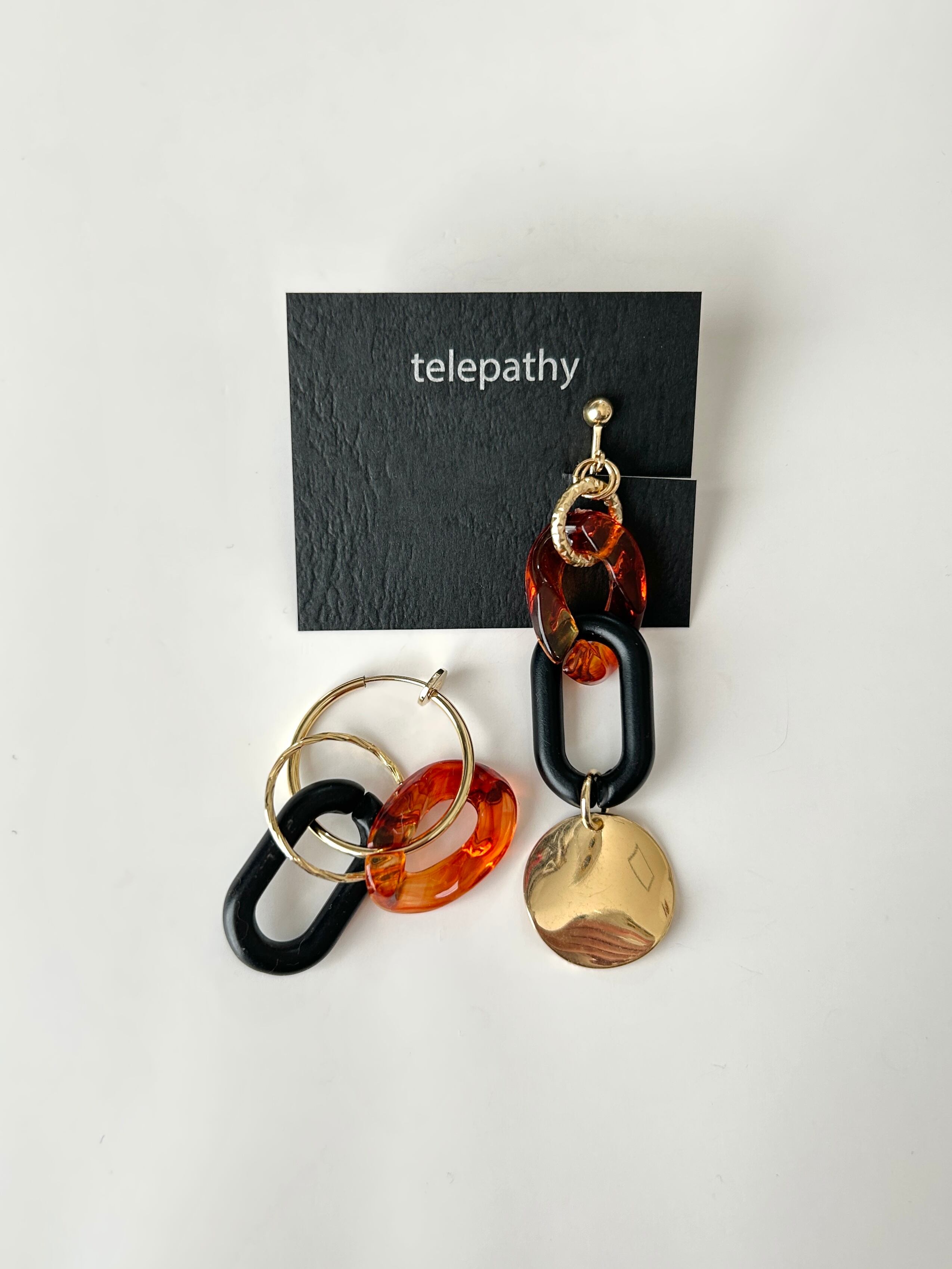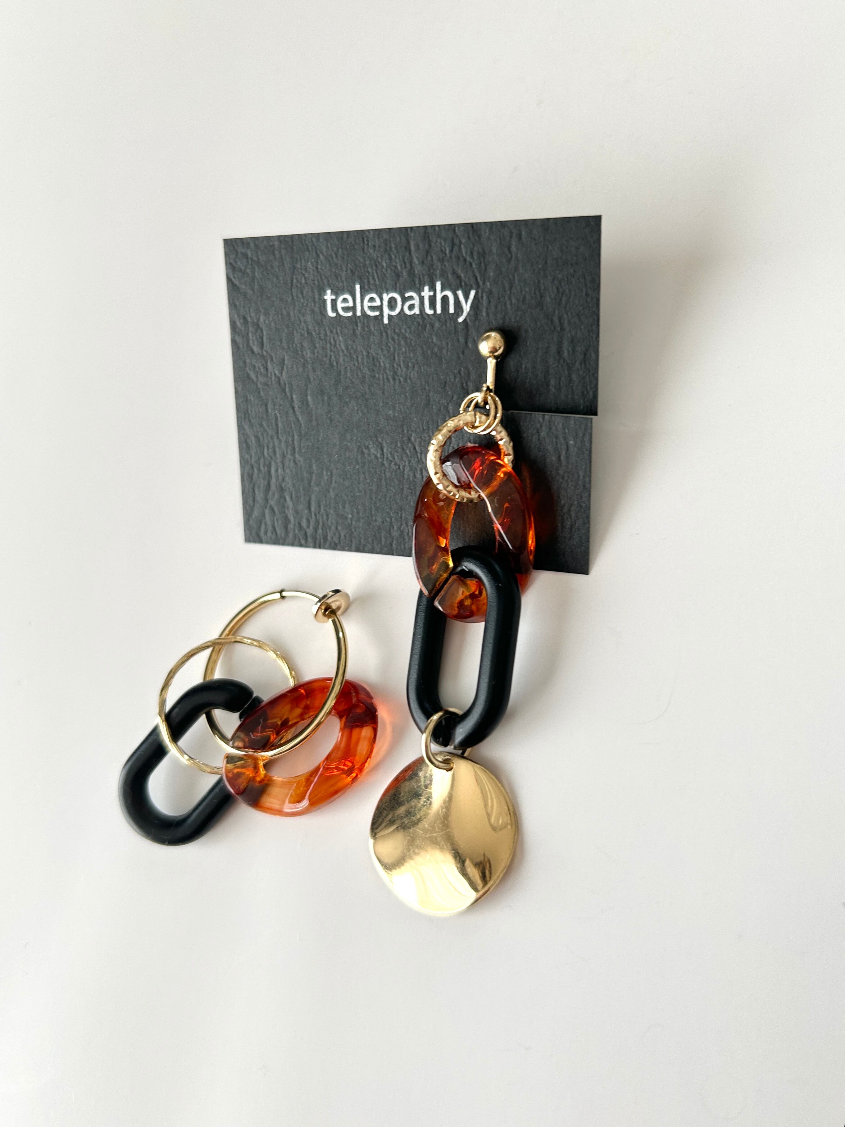 べっ甲×ブラック 大ぶりアシンメトリーイヤリング